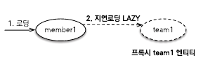 → 대신에 조회한 회원의 team 멤버 변수에 프록시 객체를 넣어둔다.