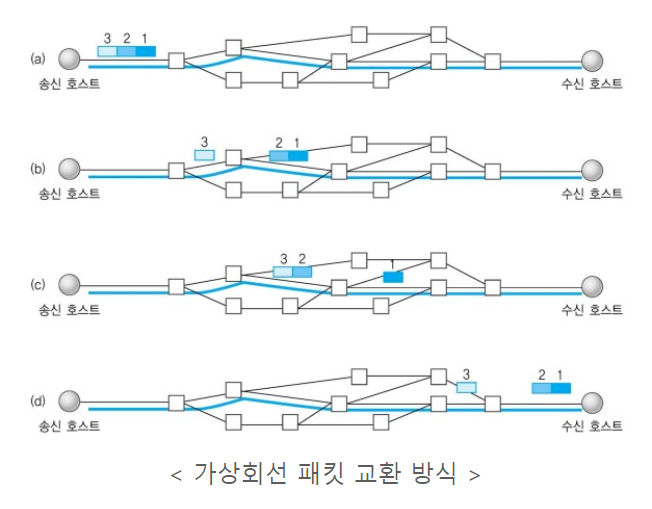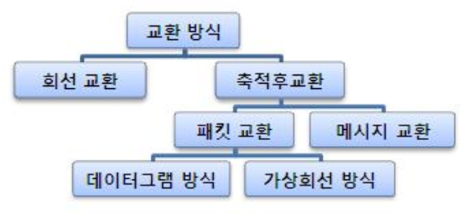 | 패킷 교환 방식 | 가상 회선 방식 | 데이터그램 방식 |